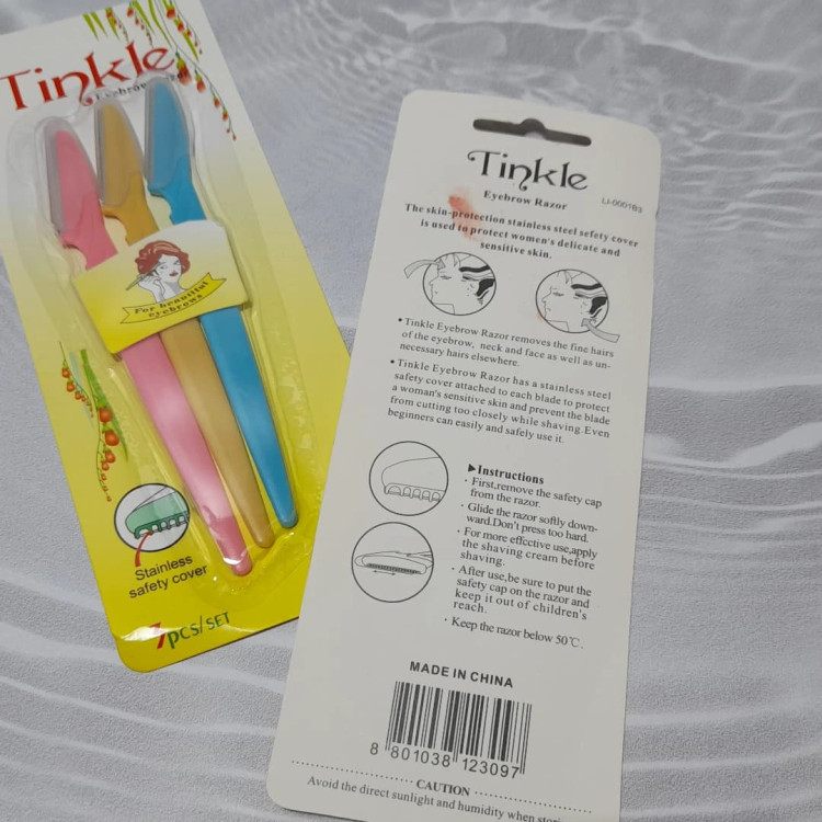 تیغ اصلاح صورت و ابرو ۳ عددی تینکل شیار دار و بدون خطر دارای در پوش پلاستیکی برای تمیزموندن دسته ی محکم مناسب شیو صورت و ابرو مناسب استفاده روی پوست خشک قابل استفاده ی برای تمیز کردن گردن و لاله ی گوش برای اصلاح صورت اول صورت رو تمیز کنید و از بالا به پایین بکشید میتونید قبلش ژل آبرسان بزنید میتونید روی پوست خشک هم بزنید اصلا مو ضخیم نمیشه و پوست صورت لایه برداری هم میشه.
