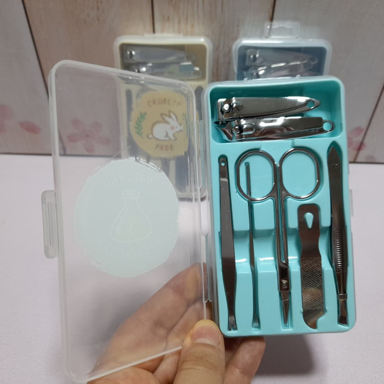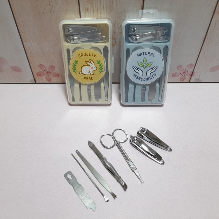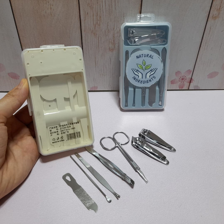 این ست شامل: ناخن گیر معمولی و ناخن گیر پوست های اضافه ی دور ناخن، سوهان ناخن، عقب دهنده ی ناخن، گوشه گیر، موچین و قیچی کاملا استیل و زنگ نمیزنه. همراه جعبه، استفاده ی راحت.